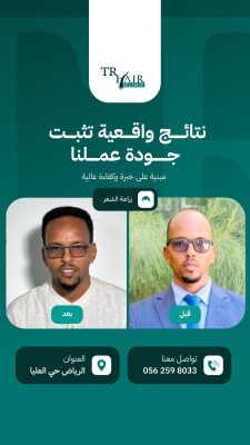 تقع TR Hair Clinic في الرياض، حيث نقدم إجراءات زراعة الشعر الاحترافية والاستشارات الطبية للمرضى من مختلف أنحاء منطقة الشرق الأوسط.
