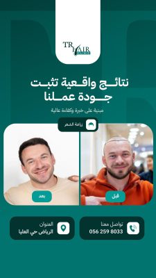 اختبر تجربة زراعة شعر عالمية في الرياض مع الخبرة والجودة التي تجعل TR Hair Clinic واحدة من أبرز العيادات في هذا المجال.